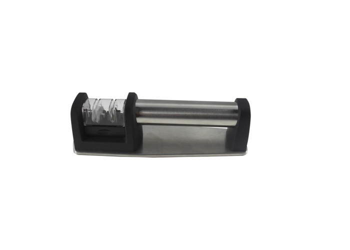 Step 1: Coarse sharpening, suit to dull knives. Place knife on the sharpening slot, using slight downward pressure, run the blade from its heel to its point through the slot. Repeat three to five times. Sharpen the tools every six months or as required.